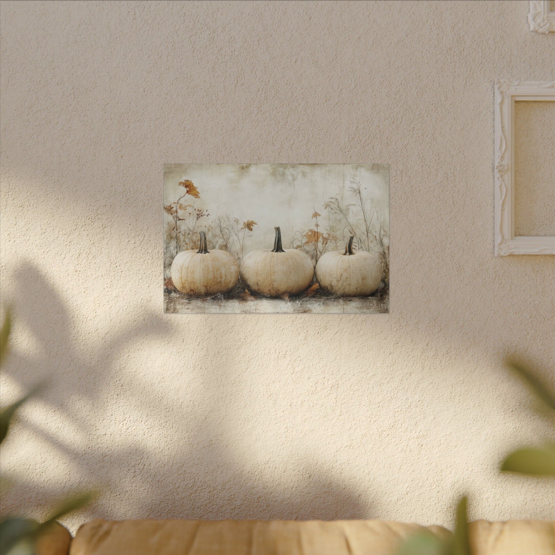 This pumpkin trio canvas print will make a great addition to you fall decor, or any time of year. Each matte canvas comes with back hanging already included for convenient placement. The frame is made with profile radial pine that is ethically sourced from renewable forests.