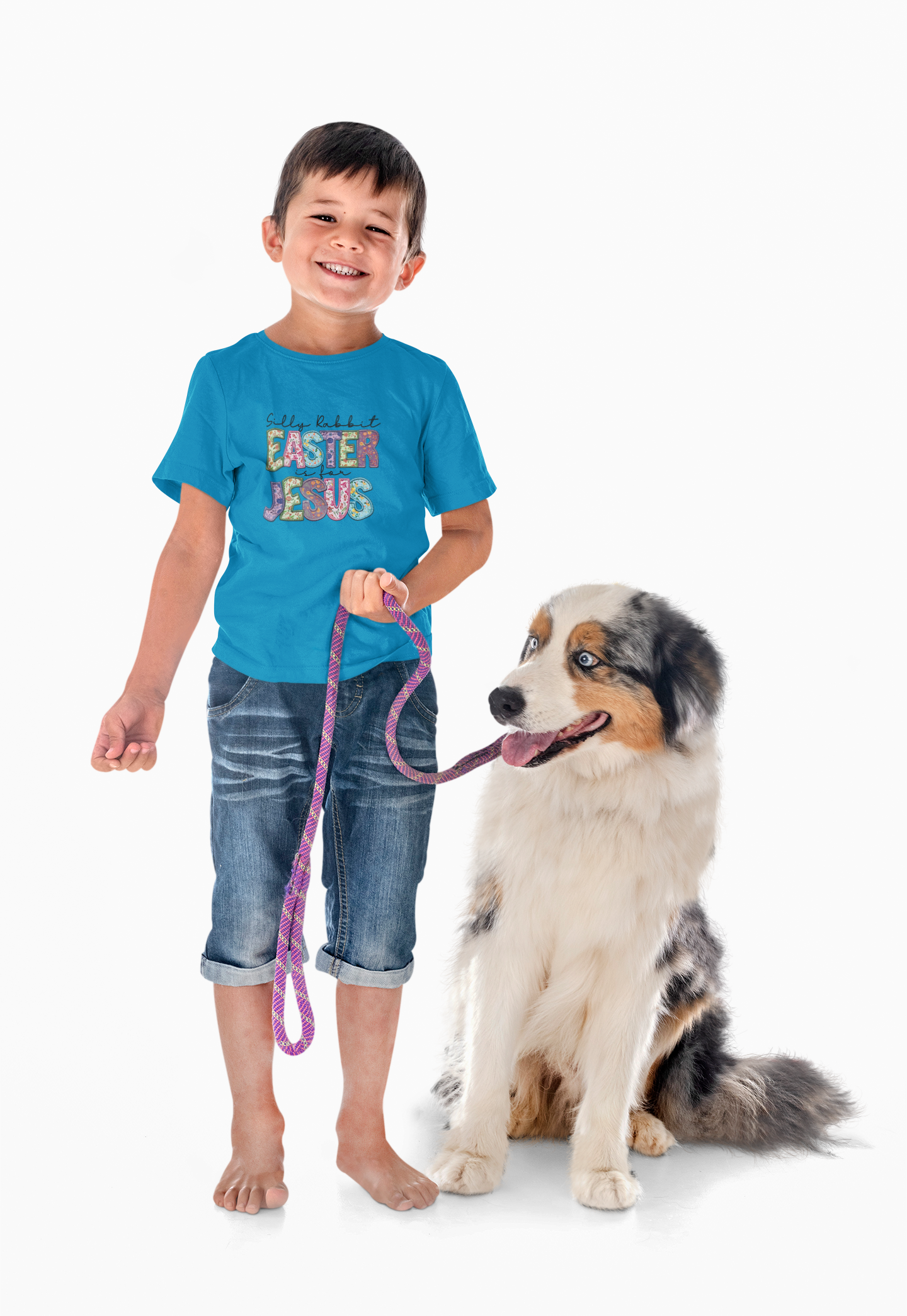 This cute tee is perfect for the Easter Season and it is sure to a laugh out of your kids. The "Silly rabbit, Easter is for Jesus" is sure to become a catch-phrase around your house. This tee is made from fabric that is 100% cotton for solid colors. Polyester is included for heather-color variants. These fabrics are prime materials for printing. The shoulders have twill tape for improved durability. The collar is curl resistant due to ribbed knitting. There are no seams along the sides.