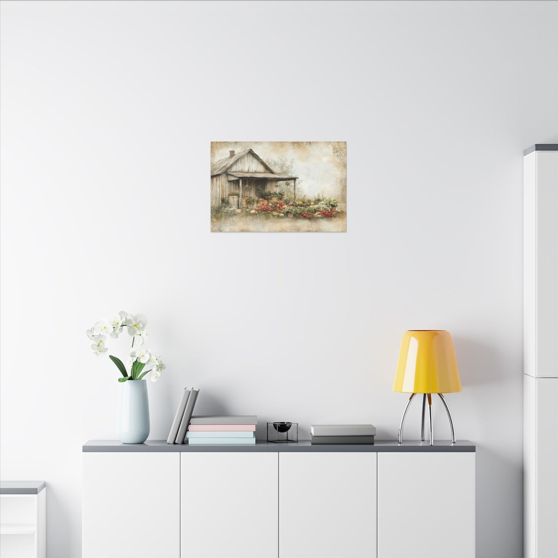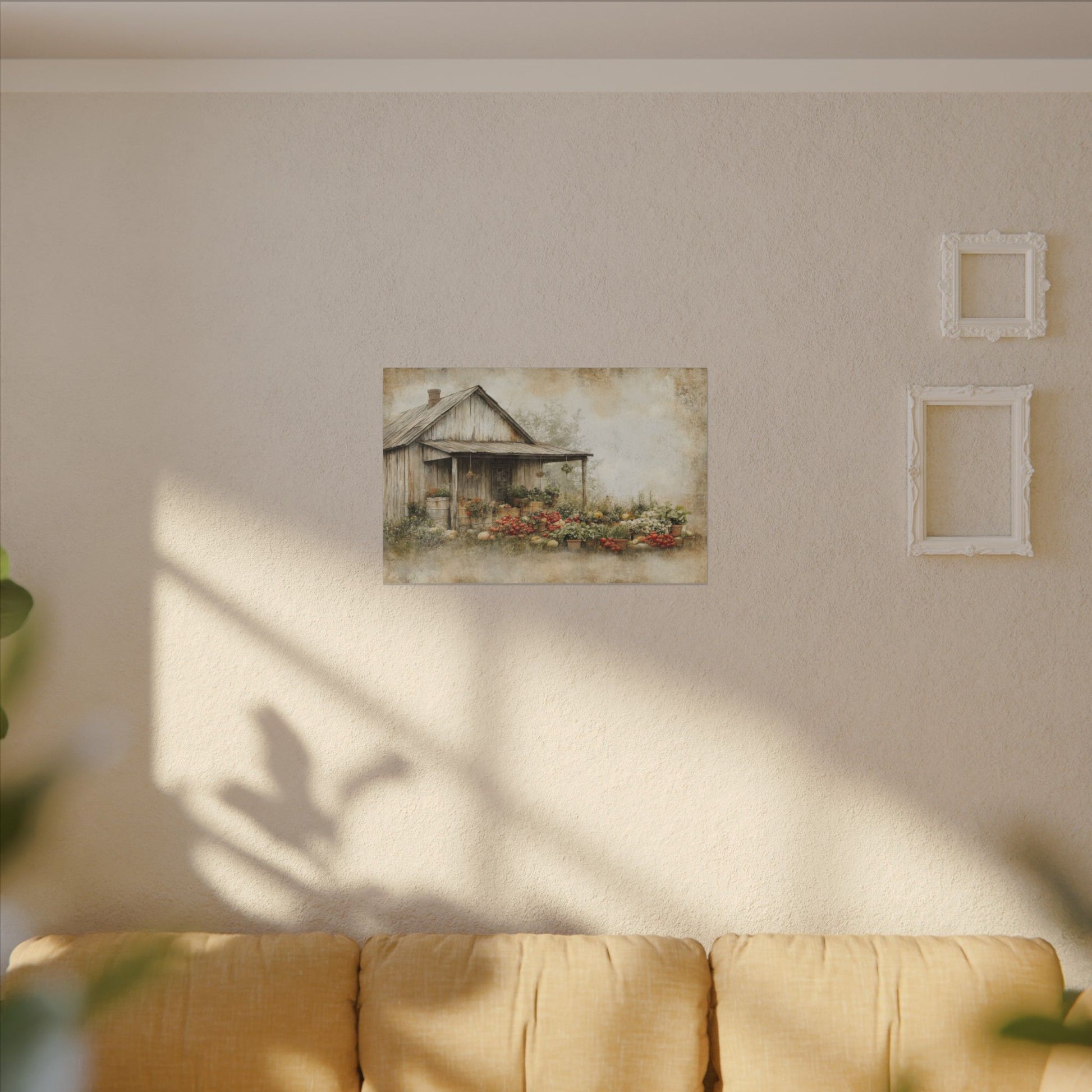 This garden shed scene will be the perfect addition to your home decor. Each matte canvas comes with back hanging already included for convenient placement. The frame is made with profile radial pine that is ethically sourced from renewable forests.