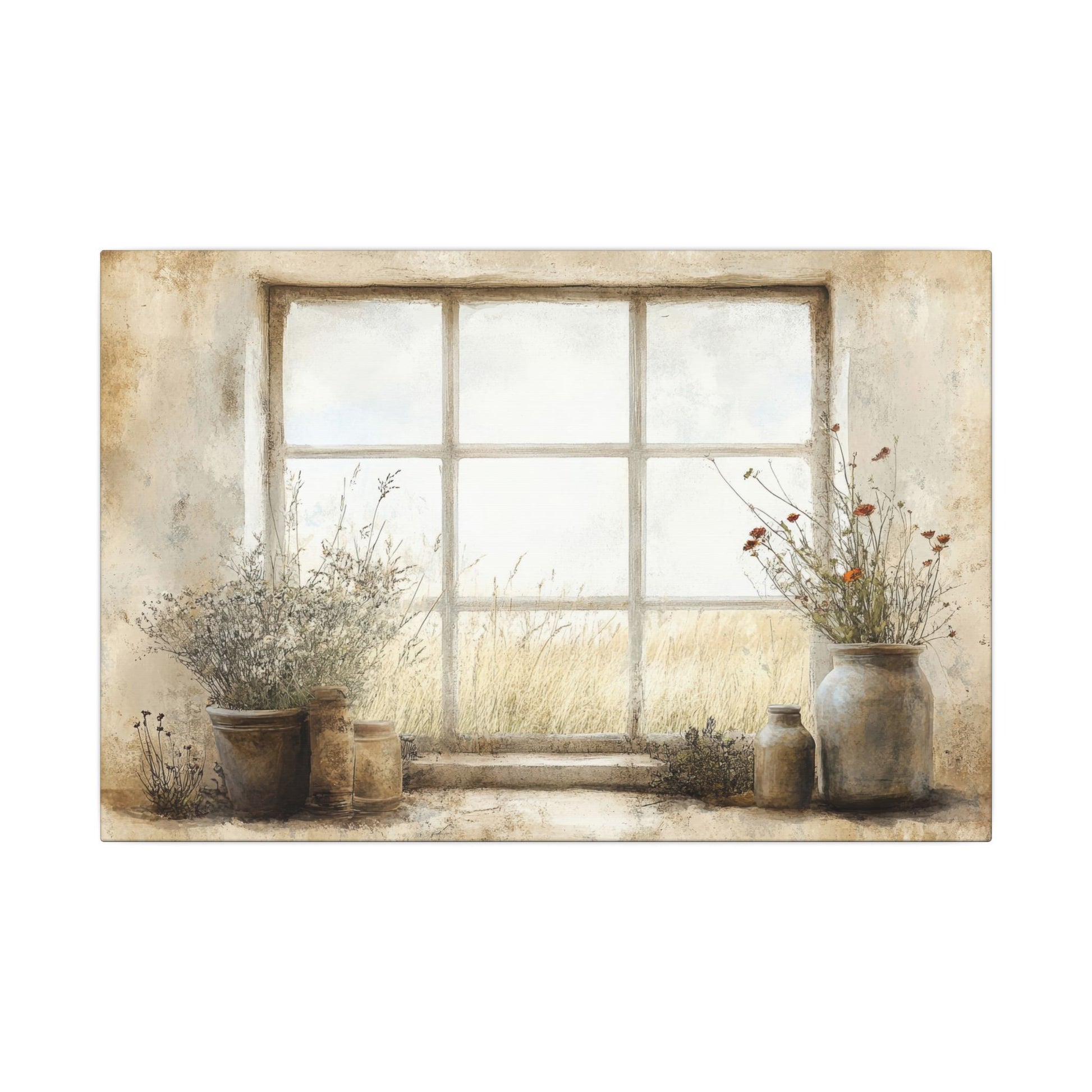 Window Flowers Canvas Wall Art